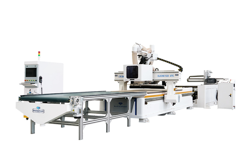 EK2直排換刀加工中心,配備大功率換刀主軸以及大容量刀庫(kù),可進(jìn)行自動(dòng)換刀,鉆孔,拉槽,切割,雕刻鏤銑等加工工序,既可實(shí)現(xiàn)定制櫥柜、衣柜的生產(chǎn)加工,又可以實(shí)現(xiàn)吸塑門(mén)板造型加工,仿古家具的雕刻銑型。